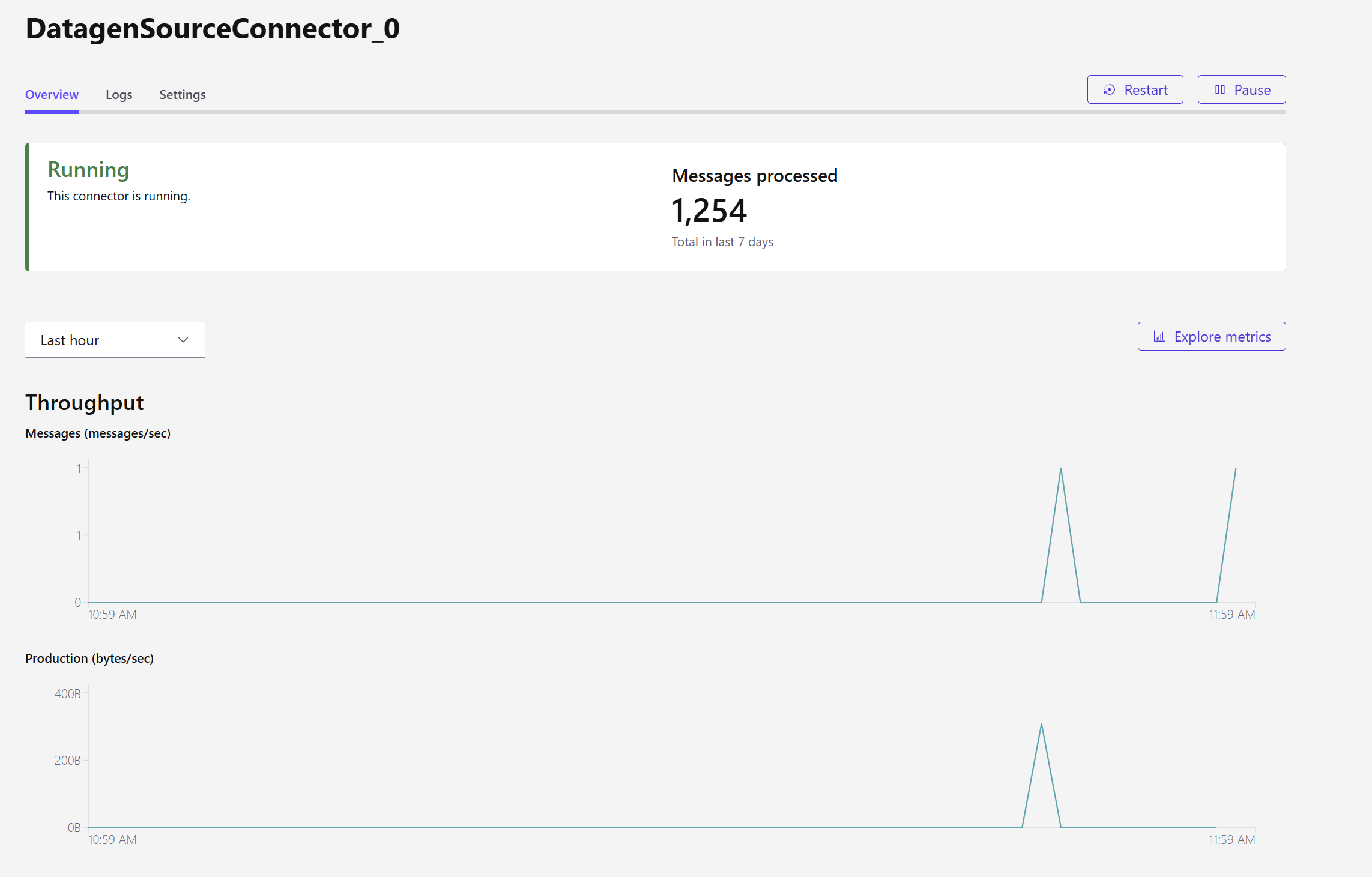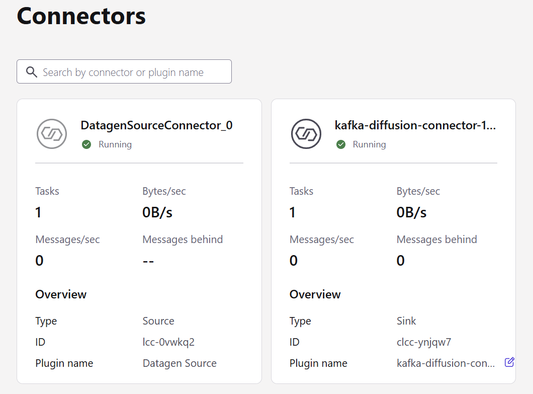 - The Diffusion Kafka Connector will be provisioned and start to run.