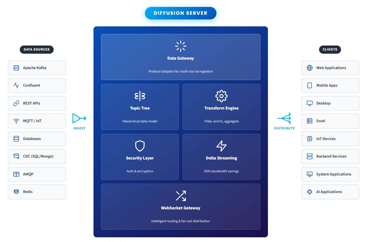 A WebSocket-optimised Pub/Sub server simplifies architecture, reduces latency, and provides the control and predictability enterprises need as their real-time workloads grow. That is why platforms like Diffusion are purpose-built as the foundation for enterprise real-time data distribution.